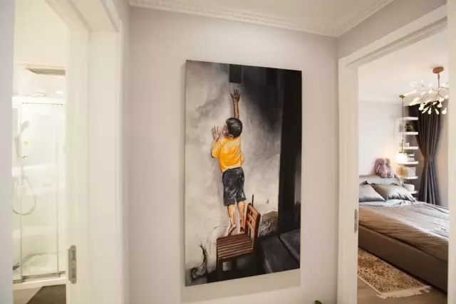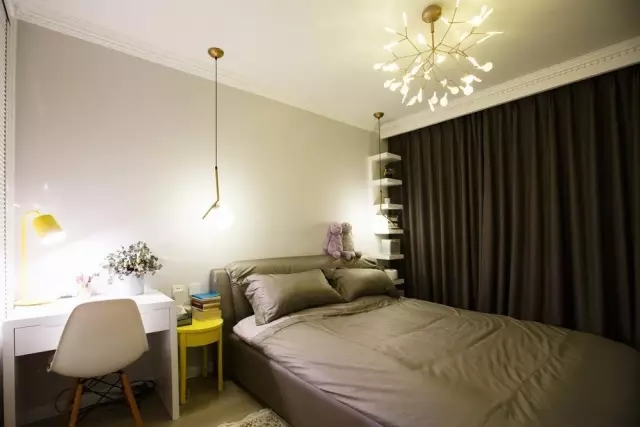 案例說明 本案以明亮的色彩搭配,讓客廳活潑溫馨,減少了局促感。 高級灰的布藝沙發(fā)搭配時尚的吊燈,打造出格調(diào)高雅的氛圍。