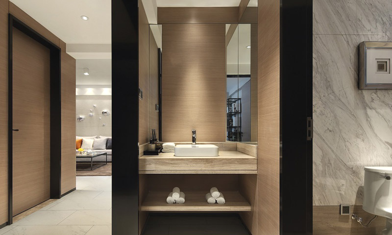 | 案例說明 | 設(shè)計師利用不同材質(zhì)的地坪畫分廚房與客餐廳空間,同時從餐廳空間延展出書房,讓此區(qū)塊的運用更為靈活不拘。由自然材質(zhì)呈現(xiàn)的大地色系,深沉的舒緩了居住者的心靈。 | ||
